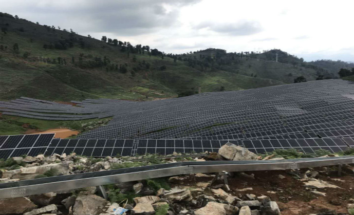 本工程2018年3月10日開工,現(xiàn)場(chǎng)施工地全是一片片的大石頭,場(chǎng)坪難度十分大,加上華坪水子坪地方每天有雨,泥石流等隨時(shí)可能發(fā)生,大霧尤為嚴(yán)重。面對(duì)如此環(huán)境,工程隊(duì)伍不畏艱難,辛苦付出,2018年6月30日按時(shí)按質(zhì)順利完成業(yè)主總包方并網(wǎng)節(jié)點(diǎn)32MW要求;2018年8月15日順利完成并網(wǎng)38MW;2018年8月20日完成合同目標(biāo):56.15665MW。